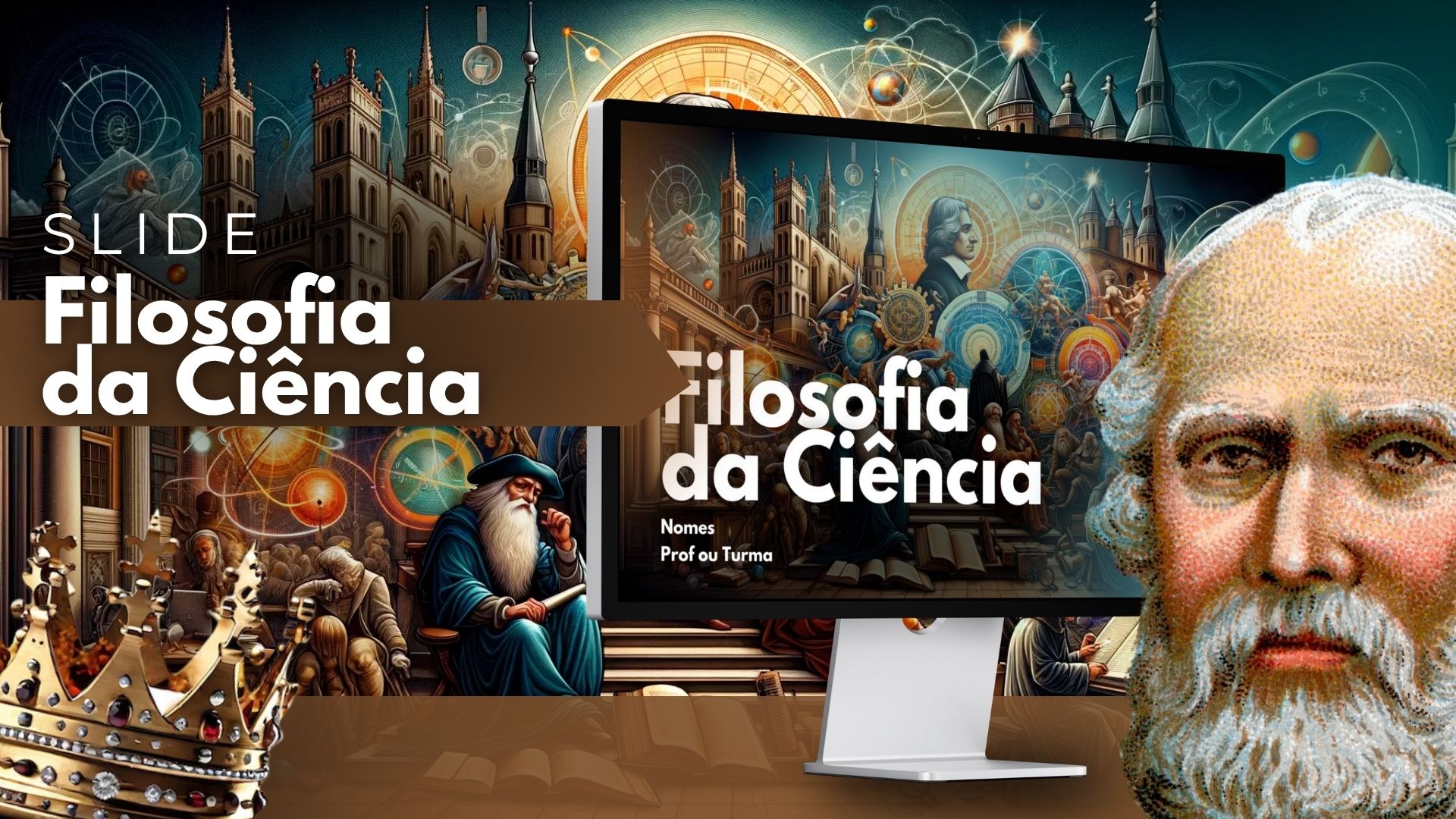 Slide editável sobre a Filosofia da Ciência, com design organizado e visual educativo, ideal para apresentação e trabalho escolar. Possui páginas prontas com espaço para textos, conceitos, pensadores e exemplos, facilitando a explicação do conteúdo. Disponível em Canva, com edição simples e rápida.