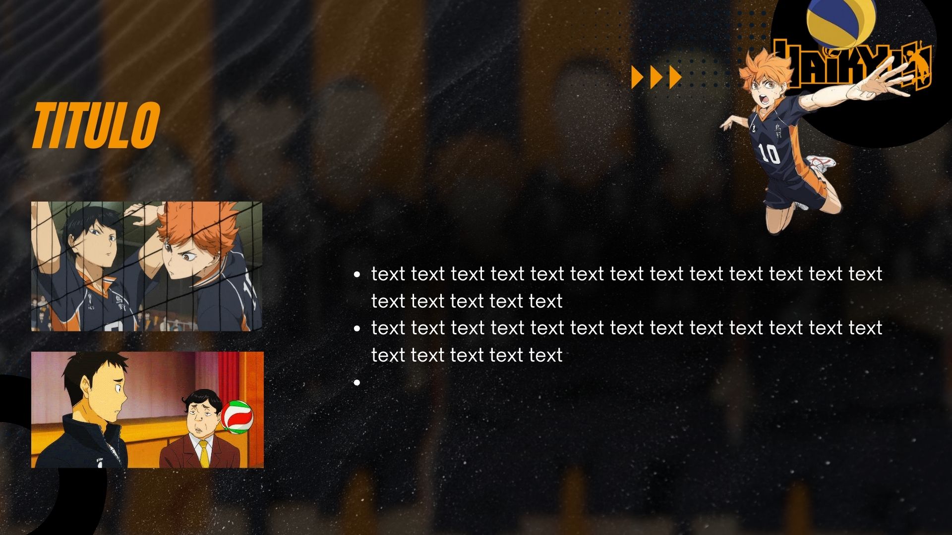 Modelo de slide editável inspirado no anime Haikyuu, ideal para trabalho escolar e apresentação sobre vôlei, esporte ou cultura japonesa. Inclui páginas para personagens, times, posições no vôlei, enredo e curiosidades. Estrutura pronta, organizada e fácil de personalizar no Canva ou PowerPoint. 🏐🔥