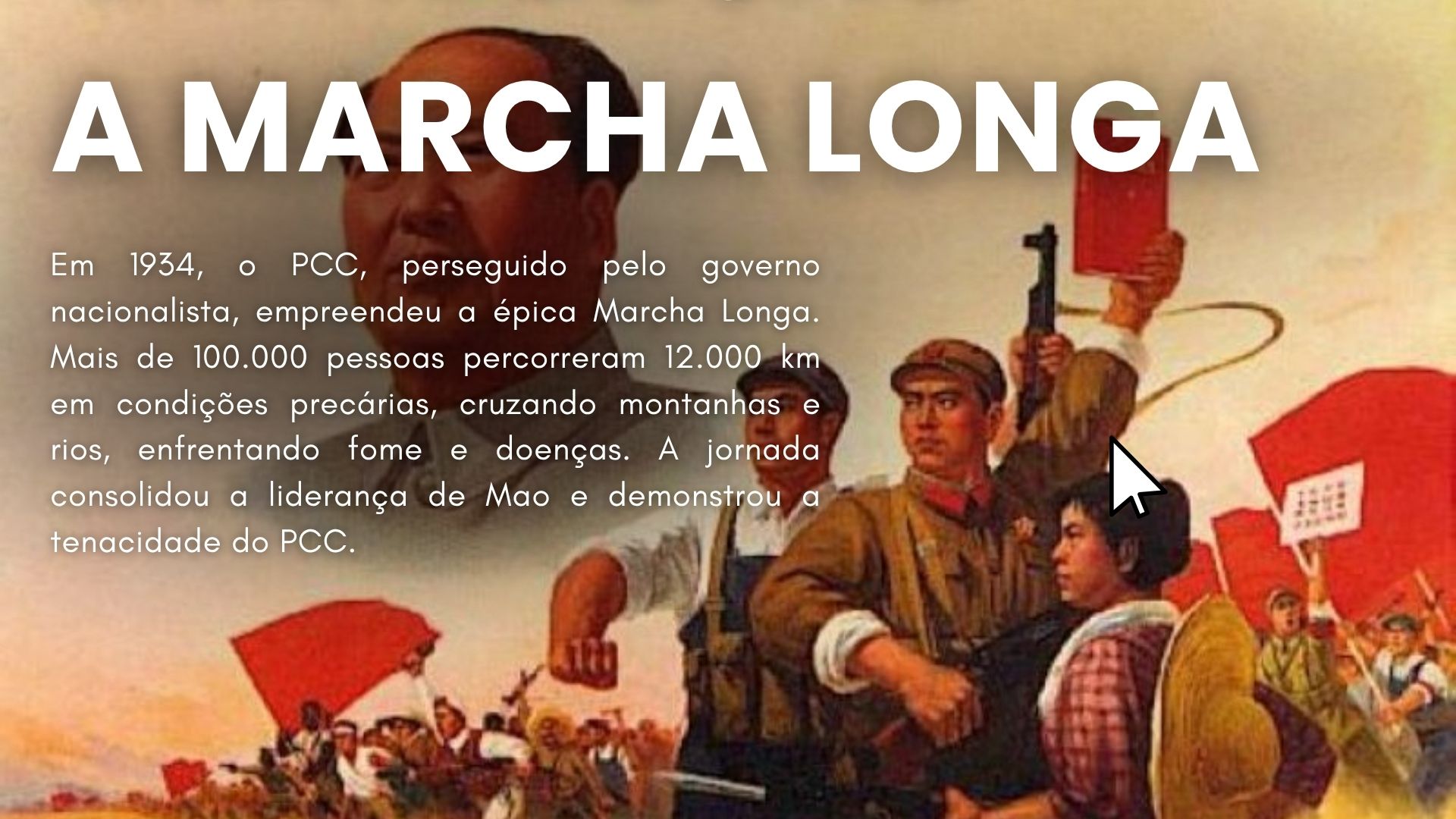 Slide editável sobre a Revolução Chinesa, com design organizado e visual educativo, ideal para apresentação e trabalho escolar. Possui páginas prontas com espaço para textos, imagens e explicação dos principais acontecimentos históricos. Disponível em versão Canva editável, com edição simples e rápida.