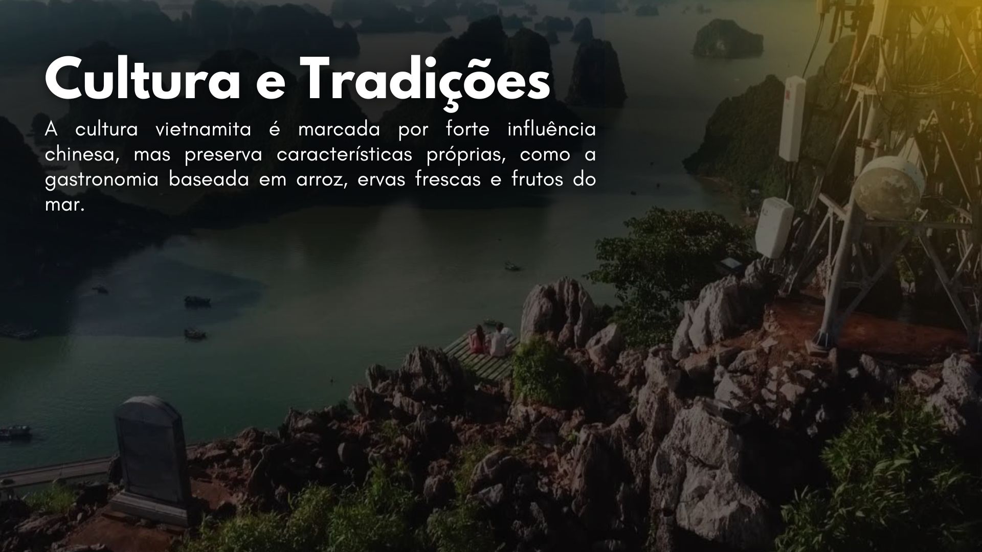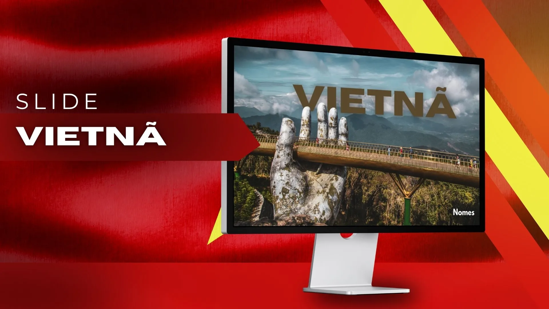 Slide editável sobre o Vietnã, com design organizado e visual educativo, ideal para apresentação e trabalho escolar. Possui páginas prontas com espaço para textos, imagens, mapa, bandeira e informações importantes sobre o país. Disponível em Canva e PowerPoint, com edição simples e rápida.