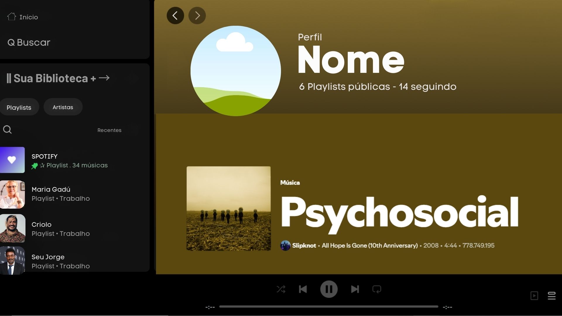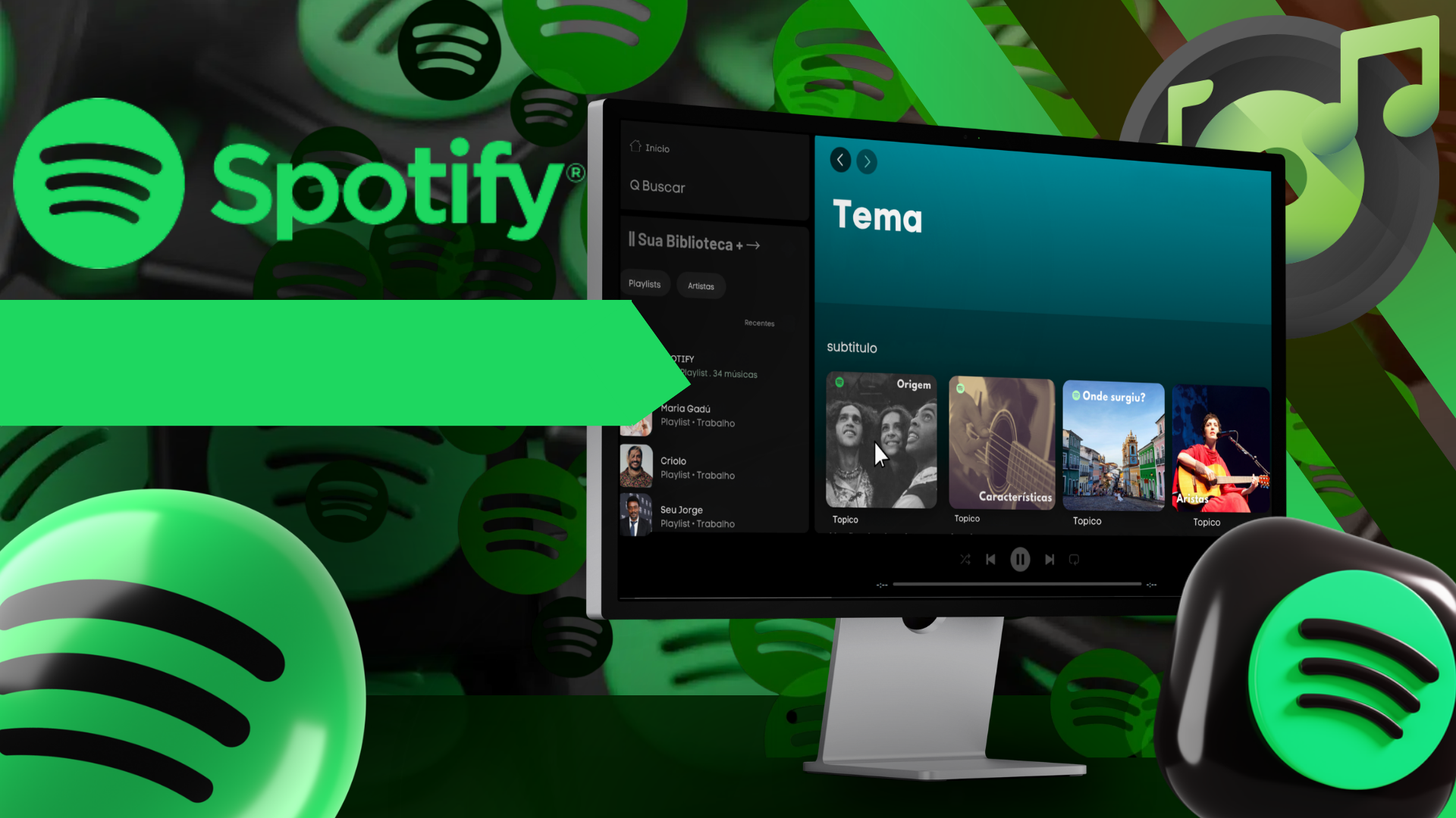 Visual moderno e musical, ideal para temas sobre música, mídia e tecnologia.